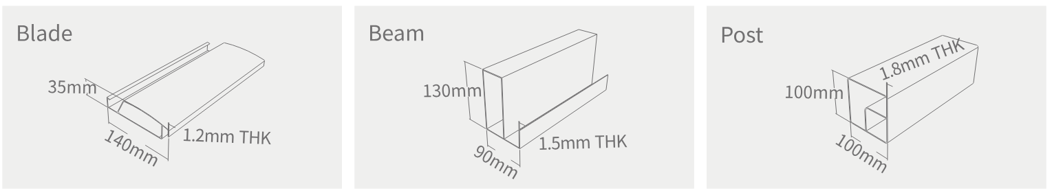 Structure aluminium extrudé 6063-T5 avec finition thermolaquée 80 microns.